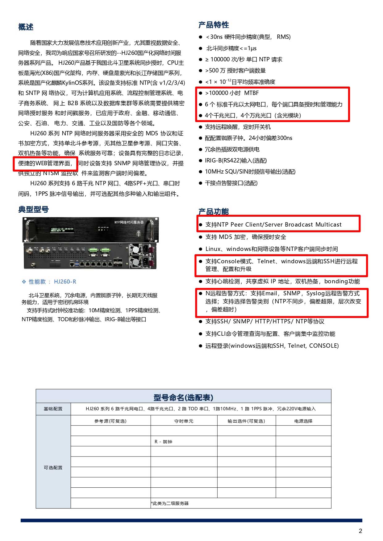 隨著國家大力發展信息技術應用創新產業,尤其重視數據安全、 網絡安全,我司為響應國家號召所研發的--HJ260國產化網絡時間服 務器系列產品。...